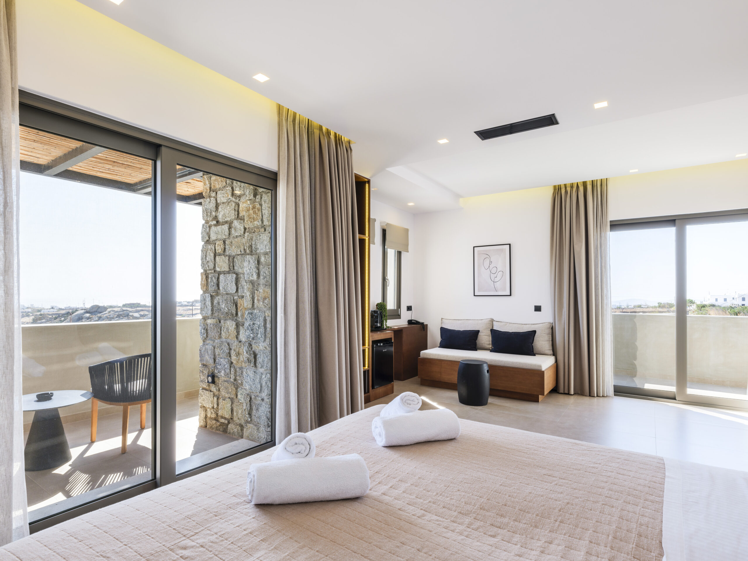 Superior Suite with Sea View – Private Pool on ground floor welcomes quests to enjoy their privacy ,offer spacious indoors and large outdoor spaces. Wake up in bedroom with elegant surroundings, large kingsized bed and spend the rest of the day in your private pool in fully modern furnished terrace